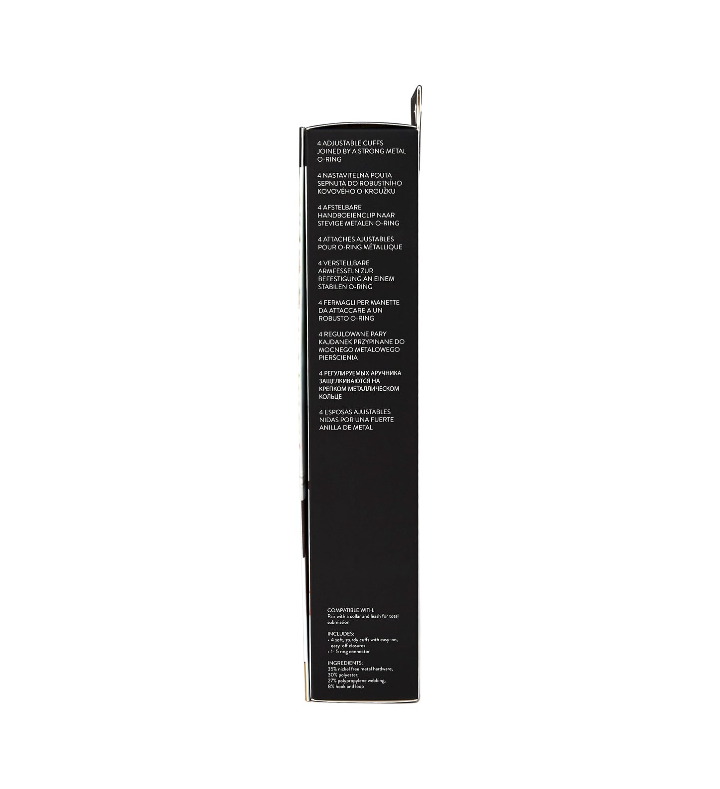 Four durable yet comfortable Sportsheets cuffs allow for a myriad of positions only limited by your dirty mind. Perfect for beginners or experienced bondage enthusiasts, this leather-free set includes the hogtie center connector and 4 detachable cuffs. Made with heavy-duty hardware, each hook clasps easily onto the D-rings of the hogtie. Alternately, the adjustable hook and loop cuffs can be used on their own as handcuffs and ankle cuffs. The 5 Piece Hog Tie and Cuff Set can be used in the front or behind the back depending on what you have in mind for the evening. Sturdy yet quick to remove, this product creates quick and easy ways to restrain your partner.