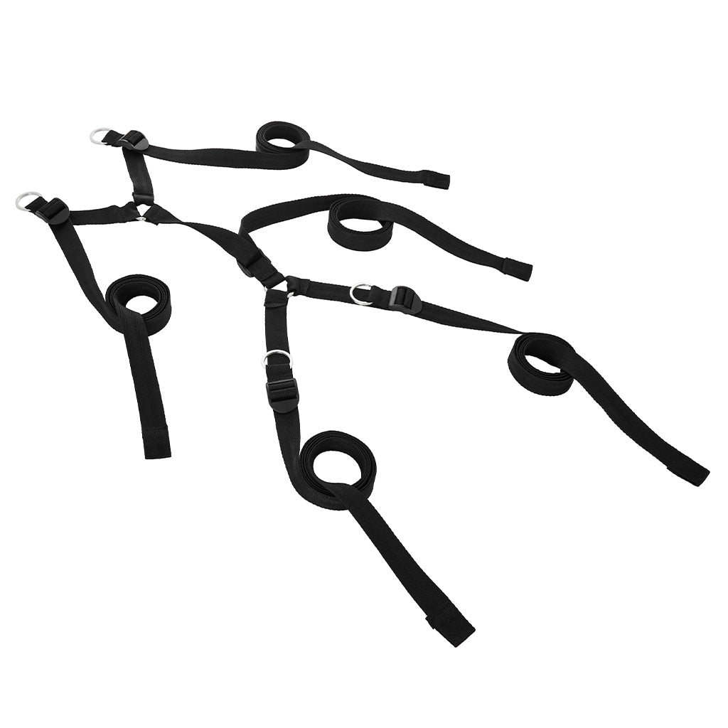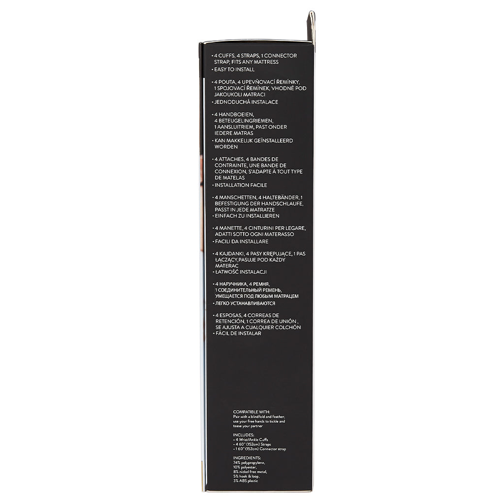 - 4 adjustable cuffs (fits 4-12" wrists), four restraint straps secured to one connector strap that fits securely under your mattress